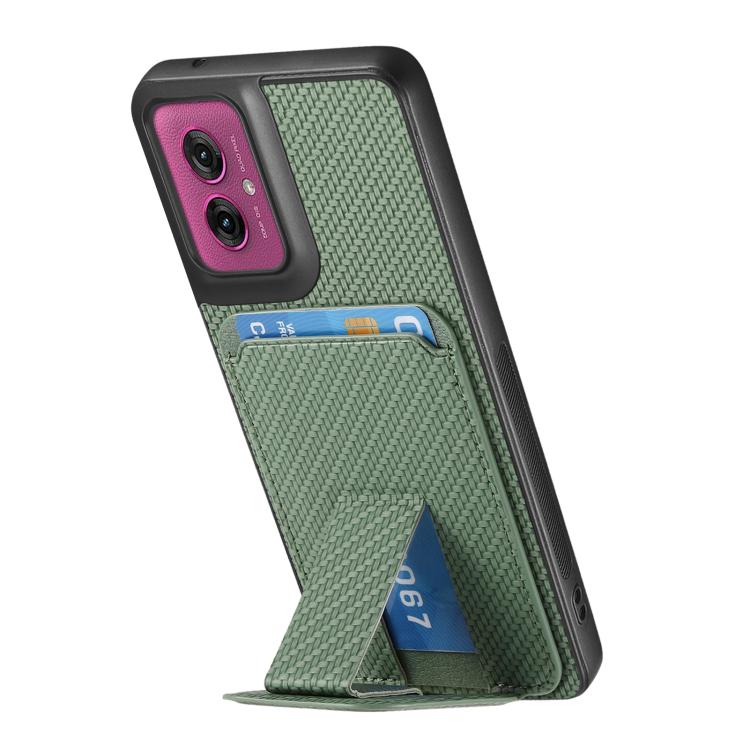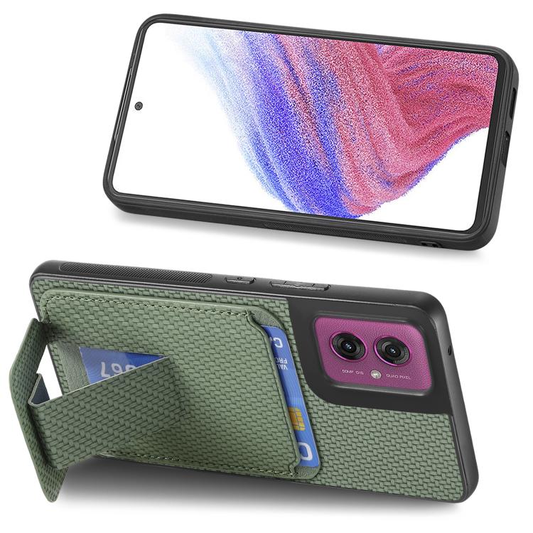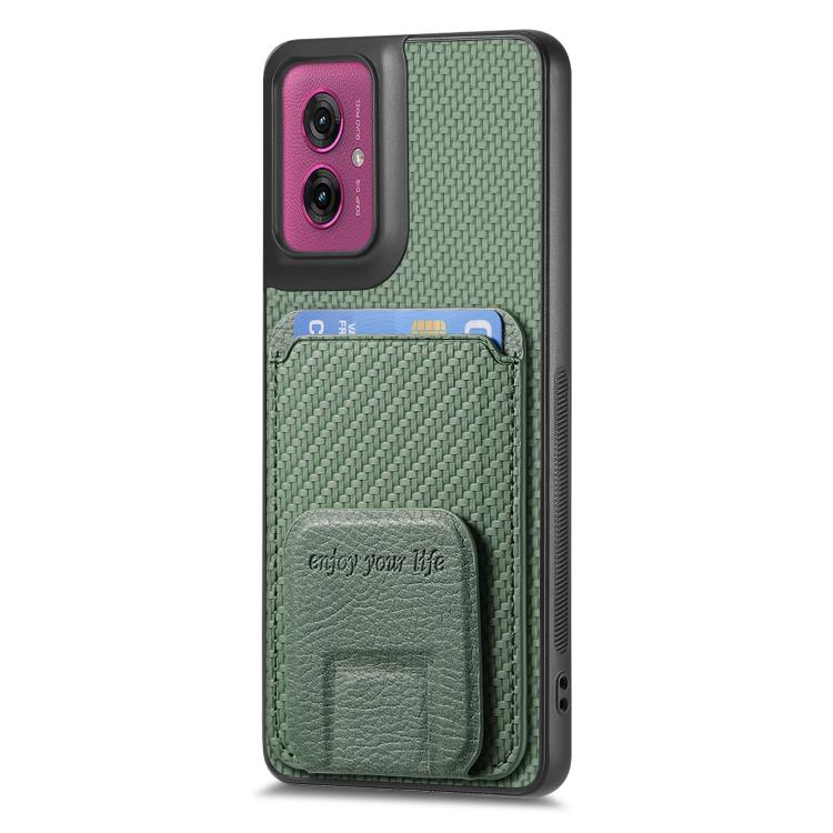 Funda Plegable para Motorola Moto G55 con Soporte para Tarjetas de Fibra de Carbono (Verde)