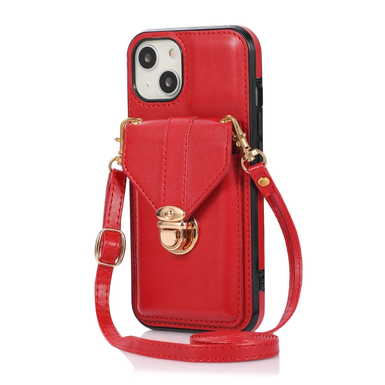Funda Protectora para iPhone 13 Pro con Hebilla Soporte Ranura Tarjeta Billetera Cordón (Rojo)
