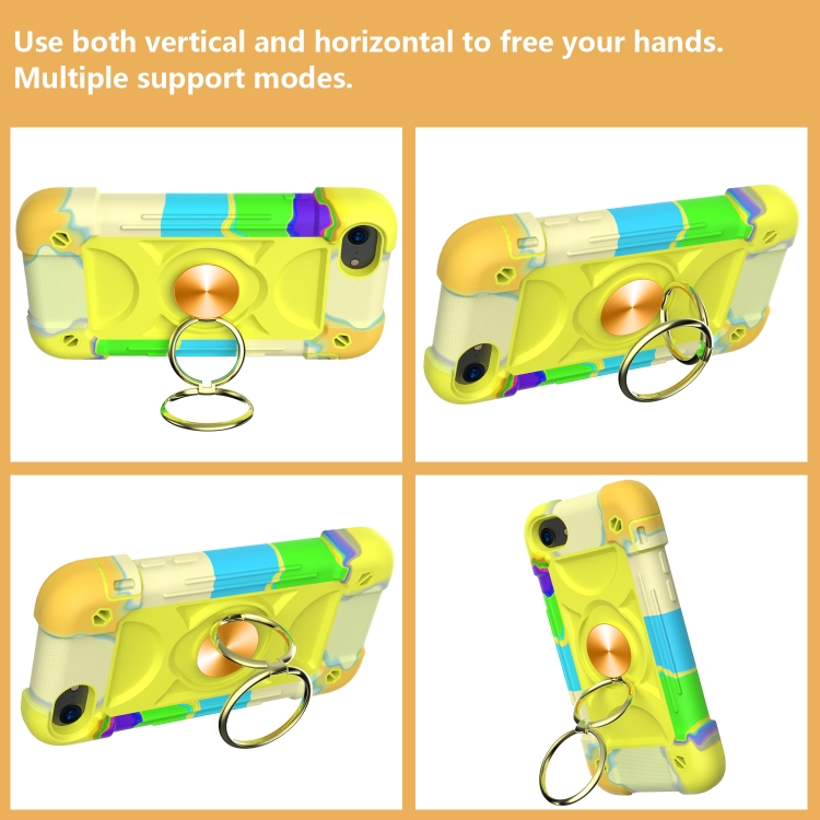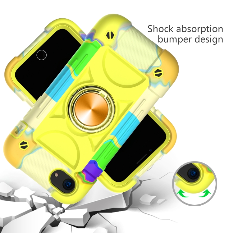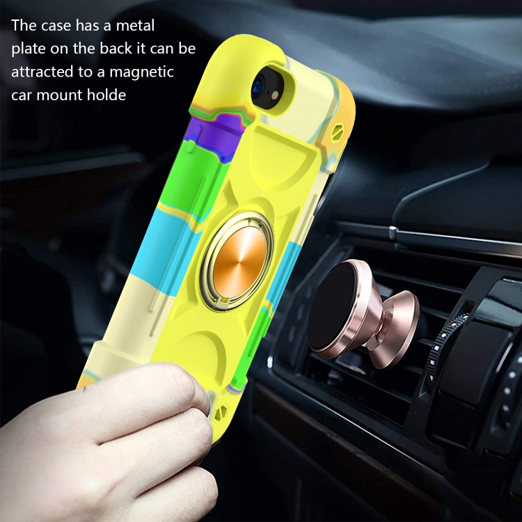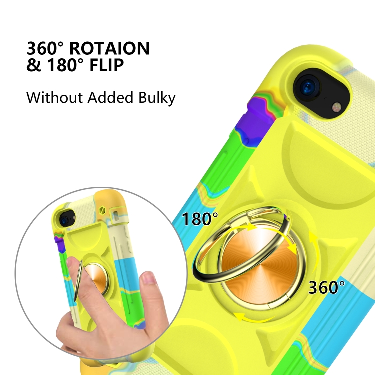 Funda Protectora Silicona y PC con Soporte de Anillo Dual para iPhone 6 Plus 6S Plus 7 Plus 8 Plus (Colorido Amarillo Verde)