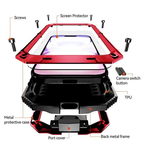 Funda R-JUST de metal, silicona y vidrio templado para iPhone 17, resistente al agua y con soporte (roja)