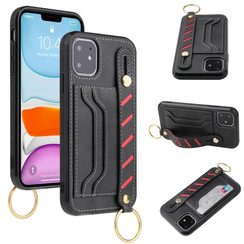 Funda Telefónica de Cuero Billetera de Pulsera para iPhone 11 Pro (Negro)