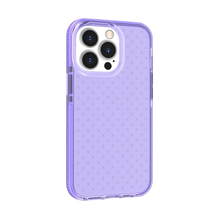 Funda Telefónica Transparente iPhone 13 Pro Patrón Cuadrícula a Prueba de Choques (Púrpura)