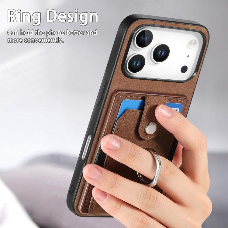Funda tipo cartera con anillo y tarjetero para iPhone 17 Pro Max, estilo retro, con tacto de piel (marrón)