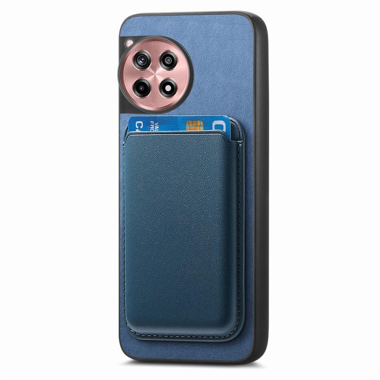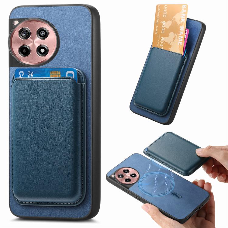 Funda Trasera PU con Tarjetero Magsafe Retro para OnePlus 13 (Azul)