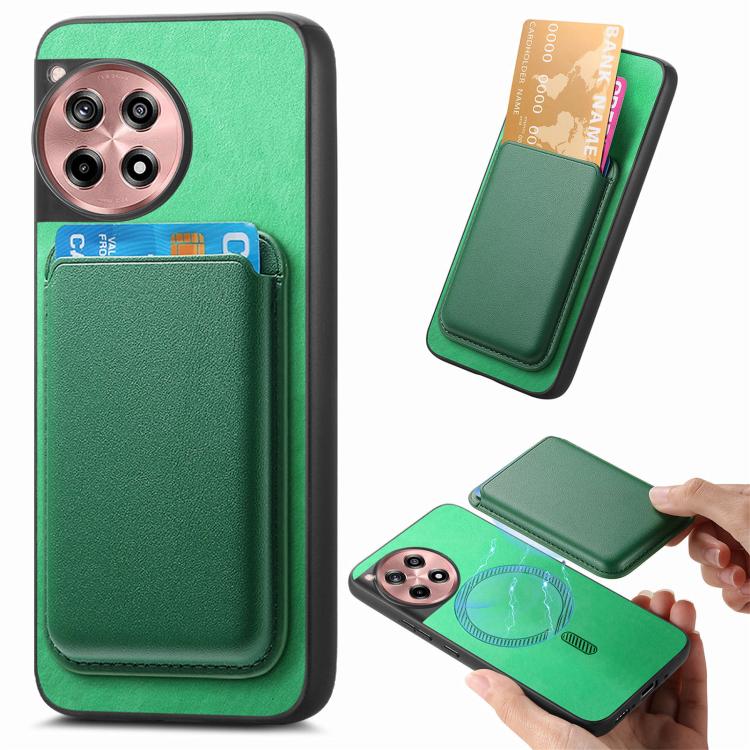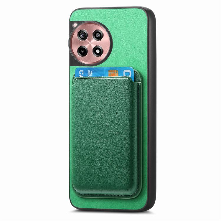 Funda Trasera PU con Tarjetero Magsafe Retro para OnePlus 13 (Verde)