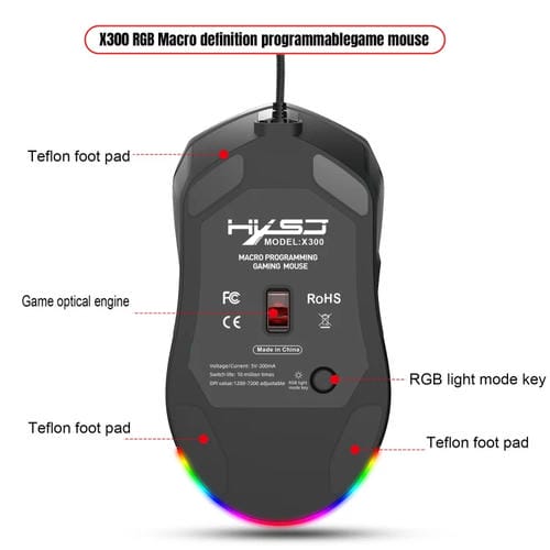 • Resolución de hasta 7200 DPI, 6 teclas programables, Botón de modo de luz, Cable trenzado de 1,5 m con anillo magnético, tasa de muestreo de 7000 FPS, vida útil de 10 millones de clics, voltaje DC 5V/180mA