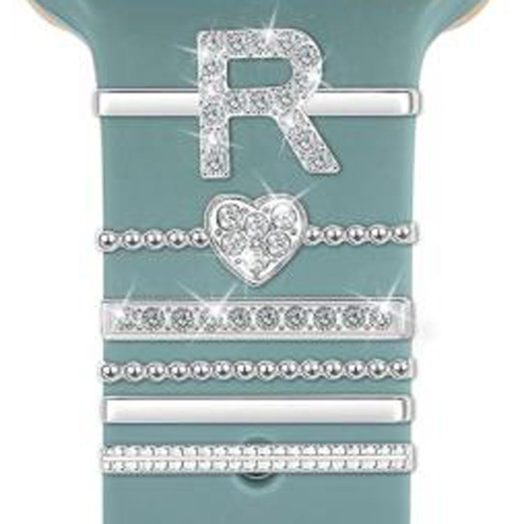 Juego de 6 correas de silicona universales para reloj inteligente, accesorios de metal decorativos, tamaño: R (plata)