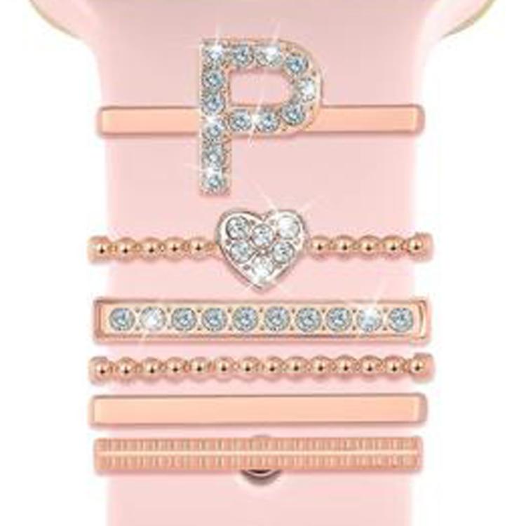 Juego de 6 correas de silicona universales para reloj inteligente, anillos decorativos de metal, tamaño P (oro rosa)
