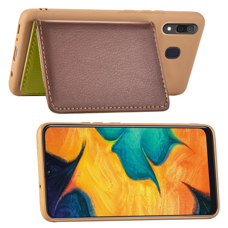 Estuche de Teléfono TPU Litchi Pattern + Soporte de Billetera Galaxy A30 (Marrón)