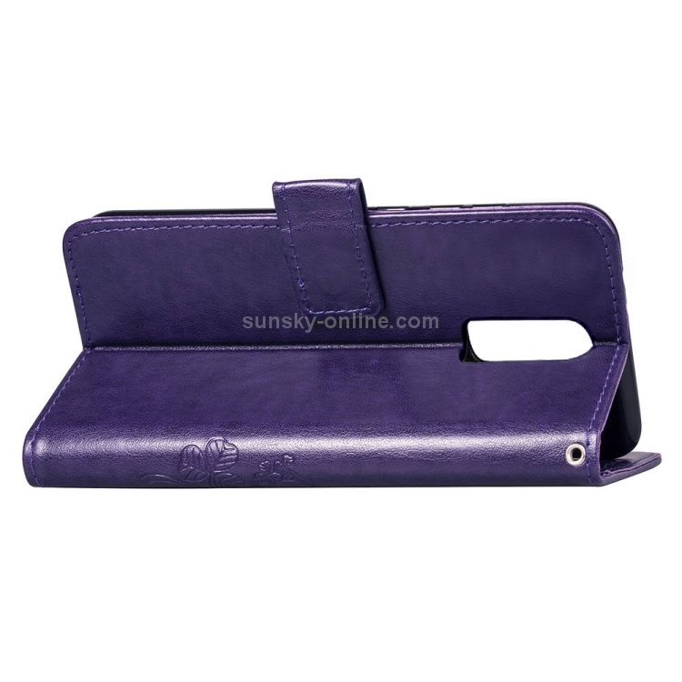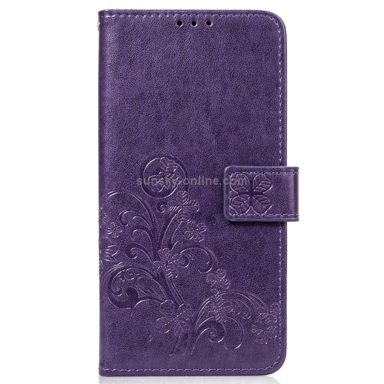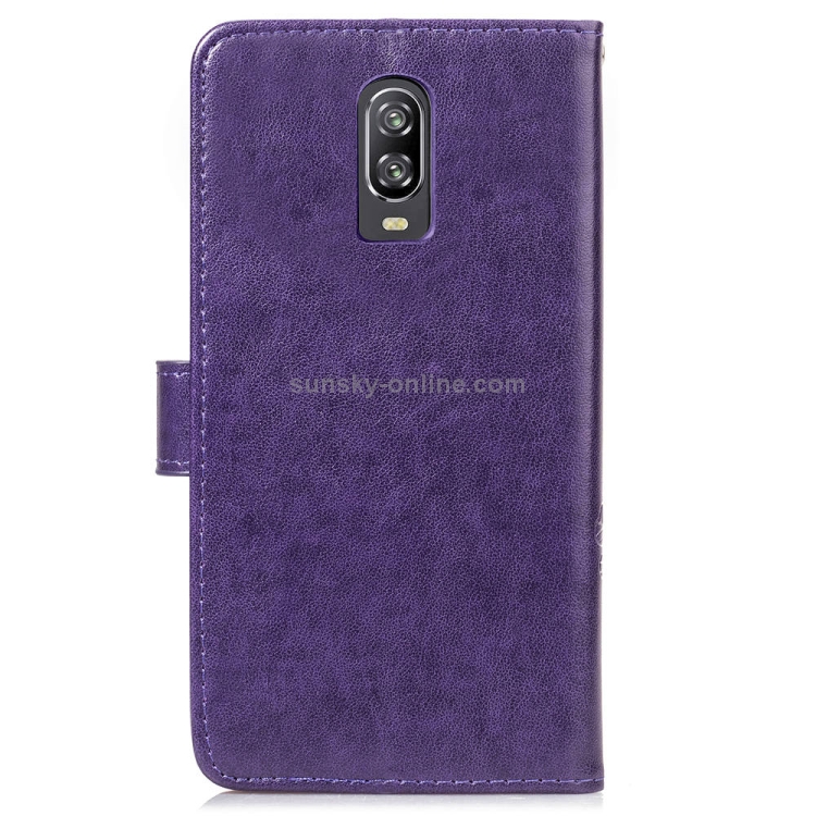 Estuche de Cuero Lucky Clover para OnePlus 6T con Soporte, Ranuras para Tarjetas, Billetera y Correa de Mano (Púrpura)