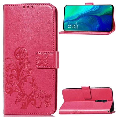 Étui en cuir à fleurs pressées Lucky Clover pour OPPO Reno 10x Zoom, avec support, fentes pour cartes, portefeuille et dragonne (rose)