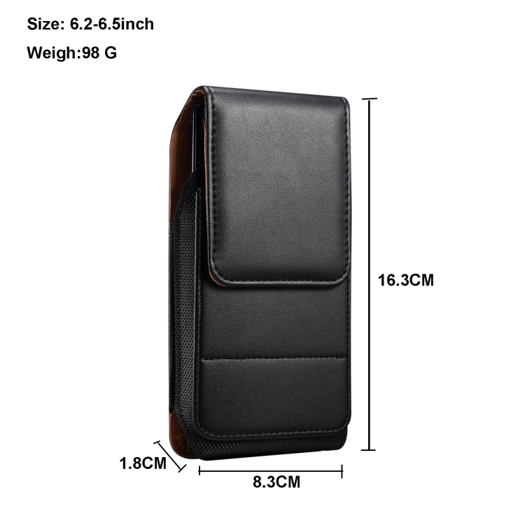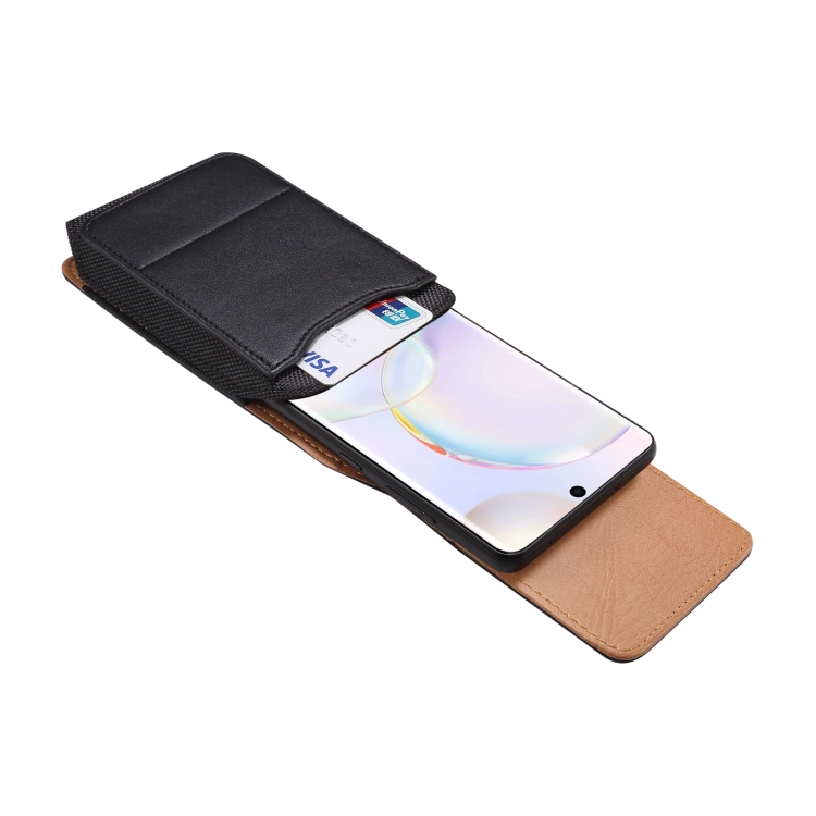Funda de Cuero para Teléfono 6.2-6.5" Estilo Vertical Textura de Cordero Ranura para Tarjeta (Negro)