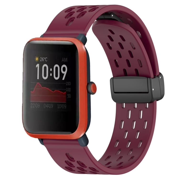 Pour bracelet de montre en silicone Amazfit Bip 1S avec fermoir magnétique pliant 20 mm (bordeaux)