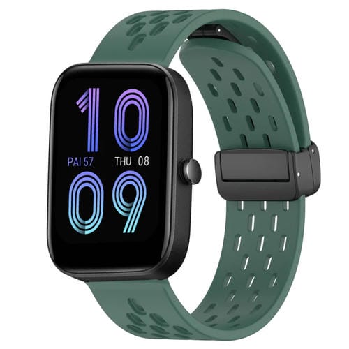 Pour bracelet de montre en silicone Amazfit Bip3 avec fermoir magnétique pliant 20 mm (vert foncé)