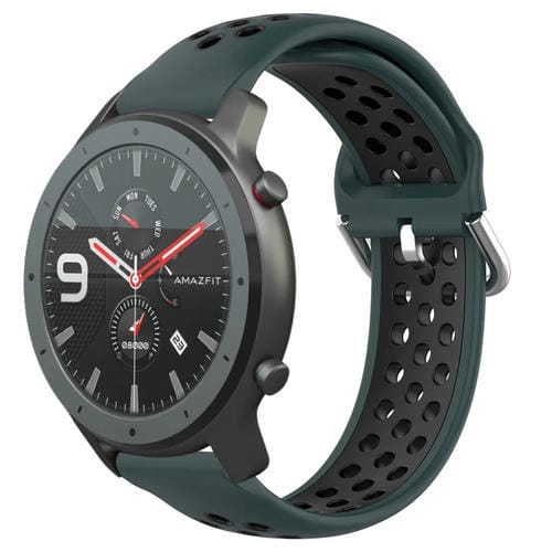 Correa de Silicona Deportiva para Amazfit GTR 47mm 22mm Transpirable Perforada (Verde Oliva + Negro)