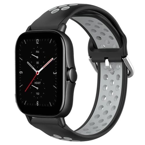 Pour Amazfit GTS 2E 20 mm bracelet de montre en silicone sport respirant perforé (noir + gris)