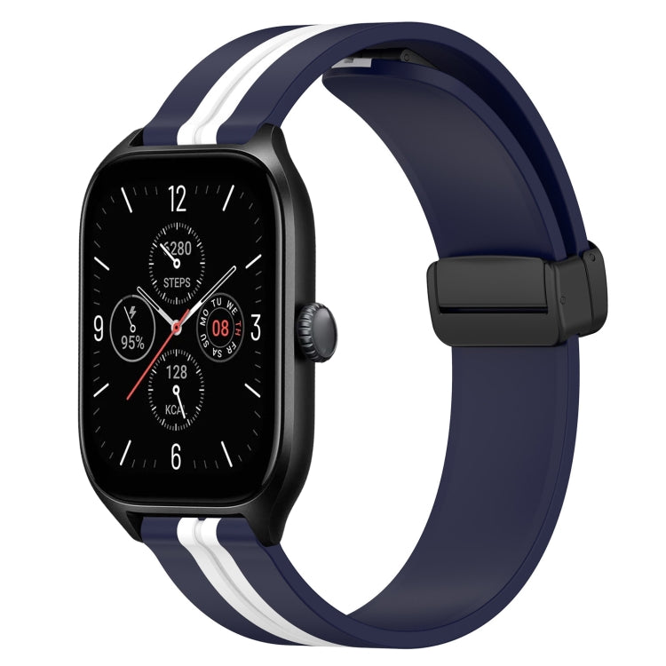 Pour bracelet de montre en silicone Amazfit GTS 4 20 mm avec fermoir magnétique pliant (bleu nuit + blanc)