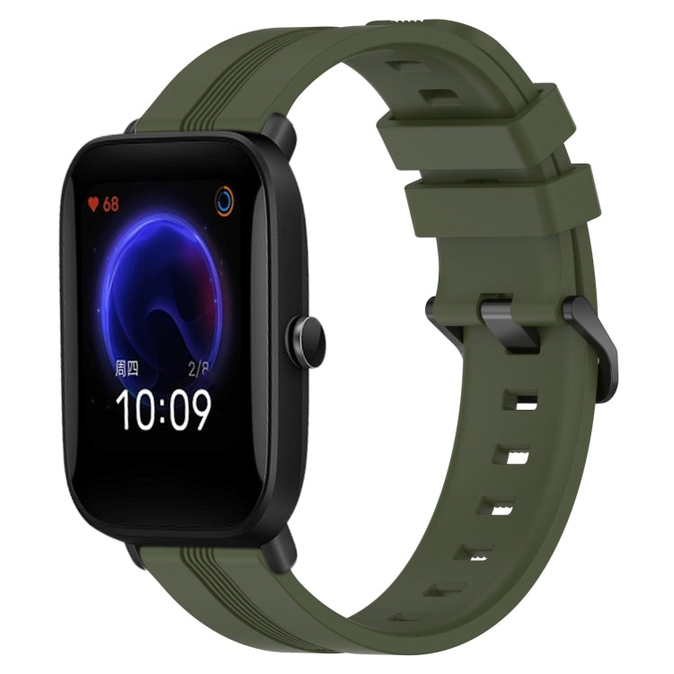 Banda de Reloj de Silicona para Amazfit Pop 20mm con Rayas Cóncavas (Verde Militar)