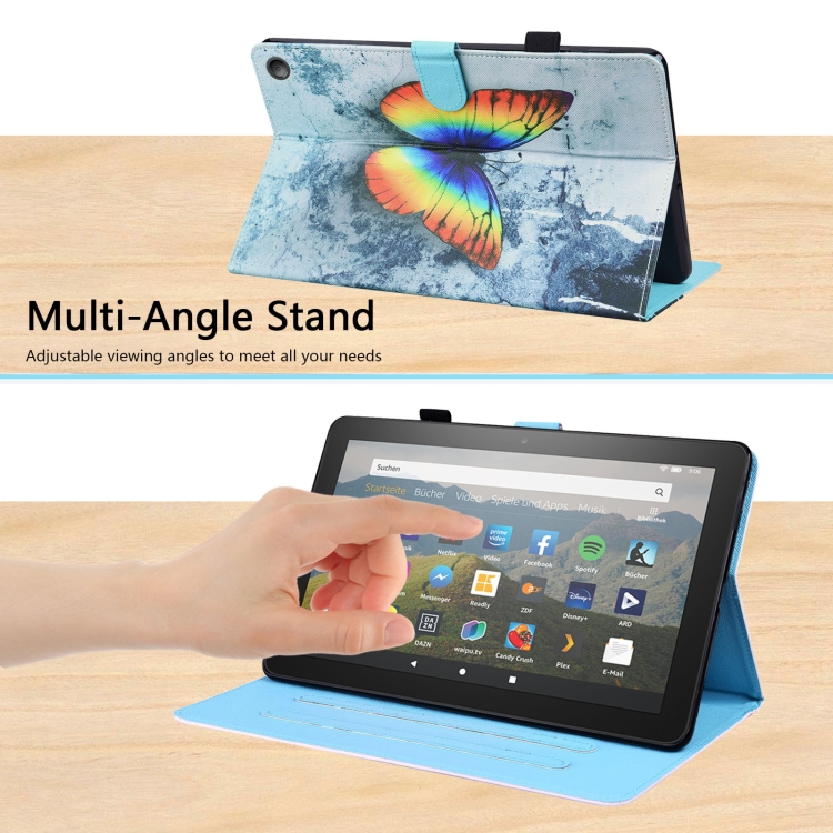Funda de Cuero para Amazon Fire HD 8 (2020) 10th Gen con Soporte, Ranuras y Marco (Mariposa)