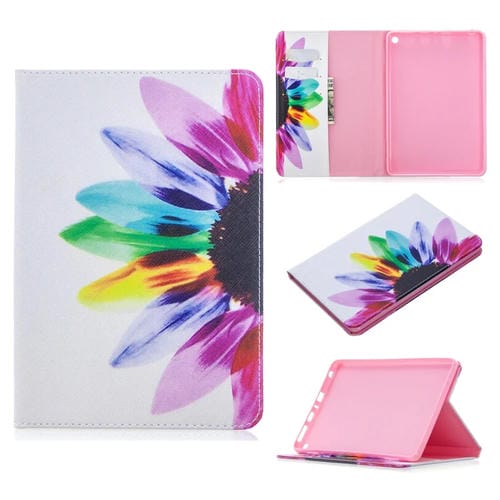 Funda de cuero para Amazon Kindle Fire HD8 (2020) con patrón de colores, tapa horizontal, soporte y ranuras para tarjetas (Girasol)