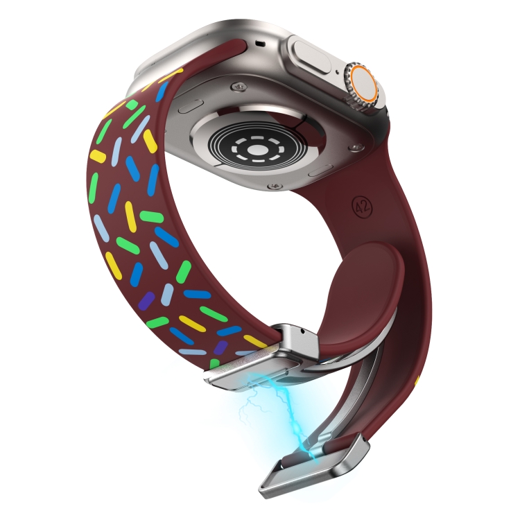 Correa de Silicona para Apple Watch 7 45mm Rainbow Dots con Hebilla Magnética (Vino)