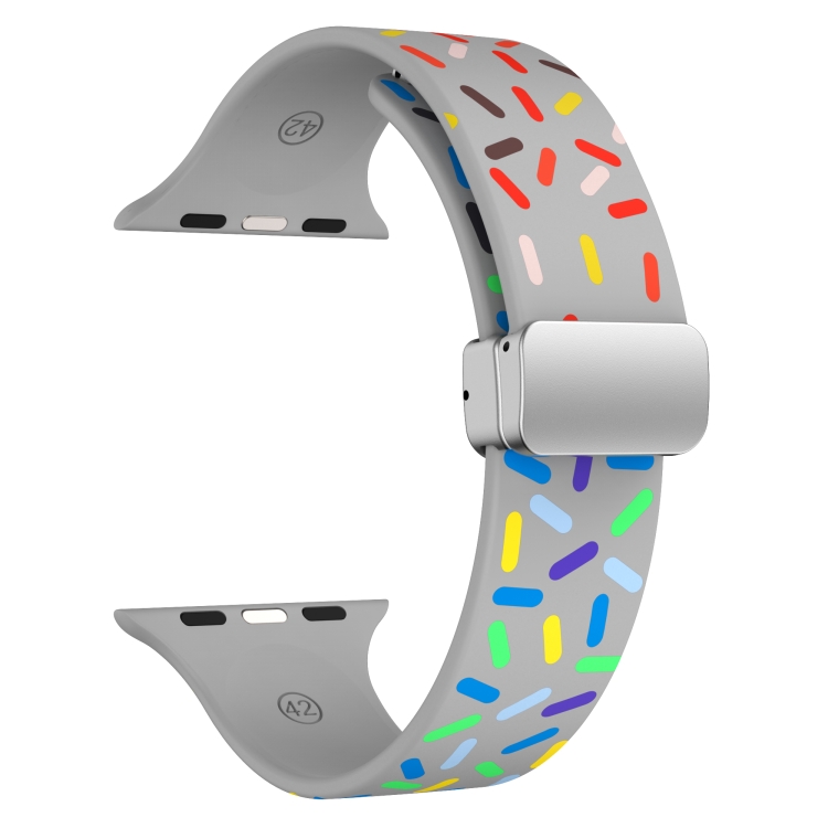 Correa de Silicona para Apple Watch 8 45mm Rainbow Dots con Hebilla Magnética (Gris)