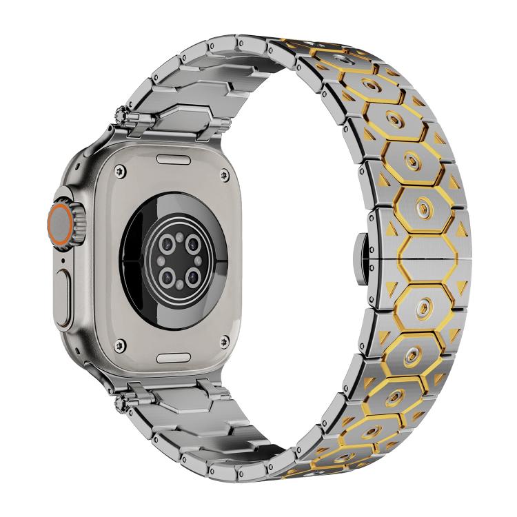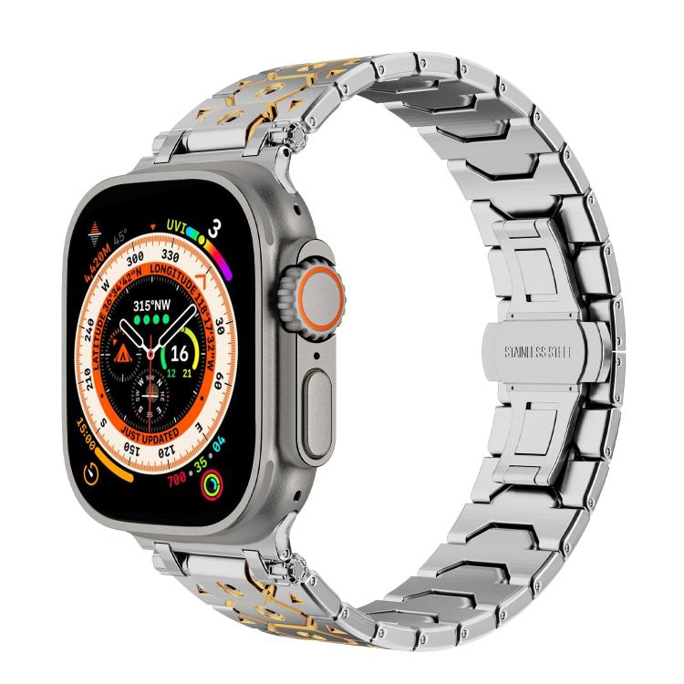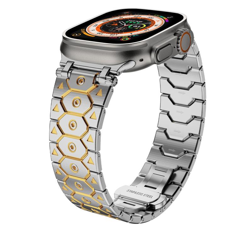 Para Apple Watch de 46 mm, 49 mm, 45 mm y 44 mm, de acero inoxidable octogonal (plata y oro).
