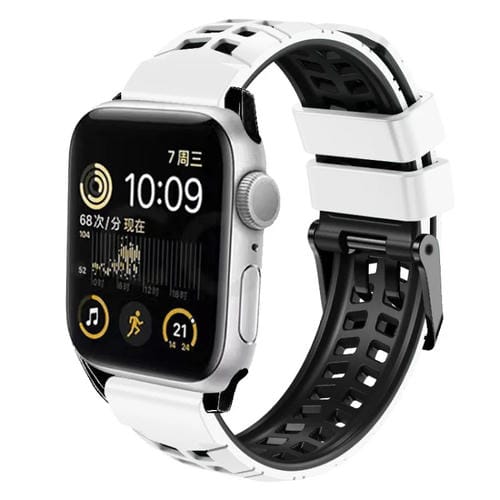 Correa para Apple Watch SE 40mm Silicona con Hebilla Doble Fila Sarga (Blanco y Negro)