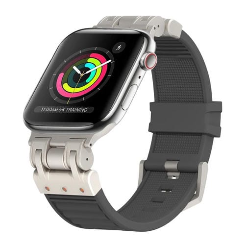 Correa de Silicona para Apple Watch Series 3 42mm a Cuadros Mecha de Metal (Gris Oscuro)