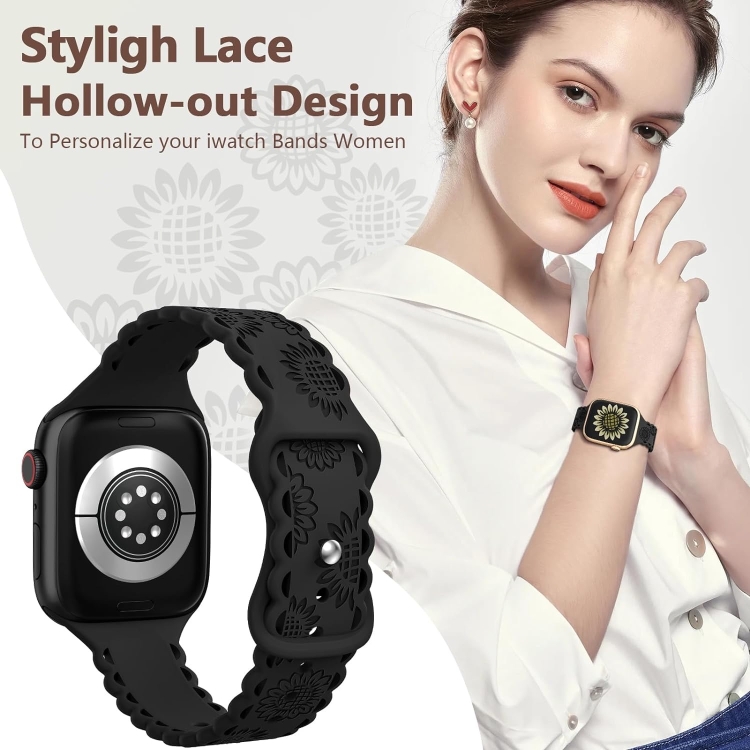 Correa de Silicona para Apple Watch Series 5 44mm con Relieve de Girasol (Negro)