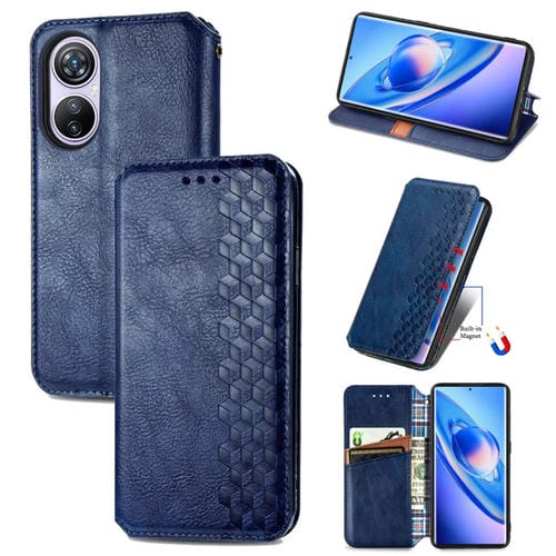 Funda de Cuero Magnético Prensado para BlackView A200 Pro Cubic Grid (Azul)