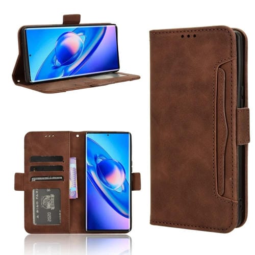 Funda para BlackView A200 Pro Skin Feel con Textura de Becerro y Ranuras para Tarjetas (Marrón)