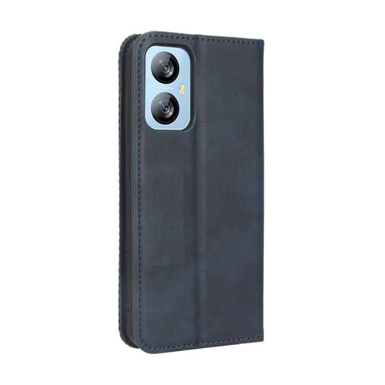 Pour Blackview A52 Étui de téléphone en cuir à texture rétro avec boucle magnétique (bleu)