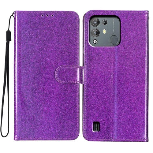 Funda de Cuero Glitter Powder para BlackView A55 Pro Flip (Púrpura)