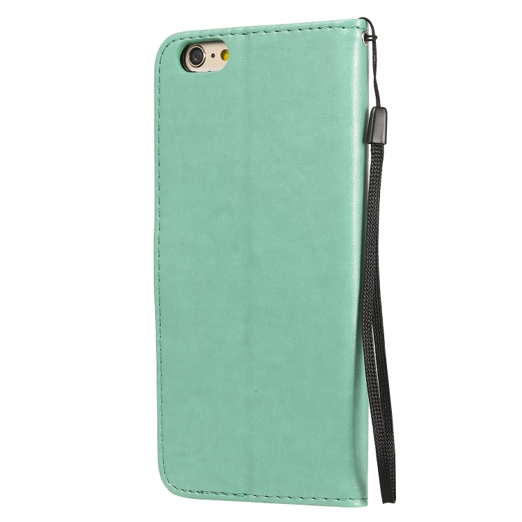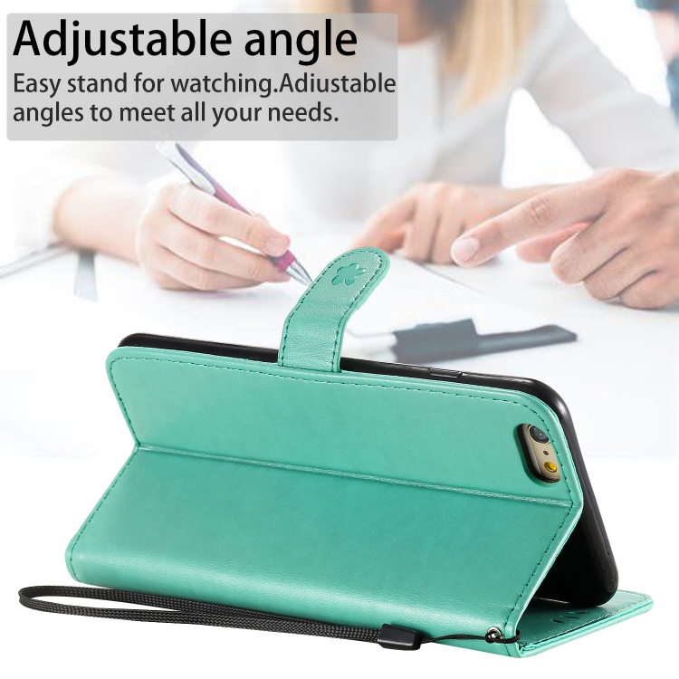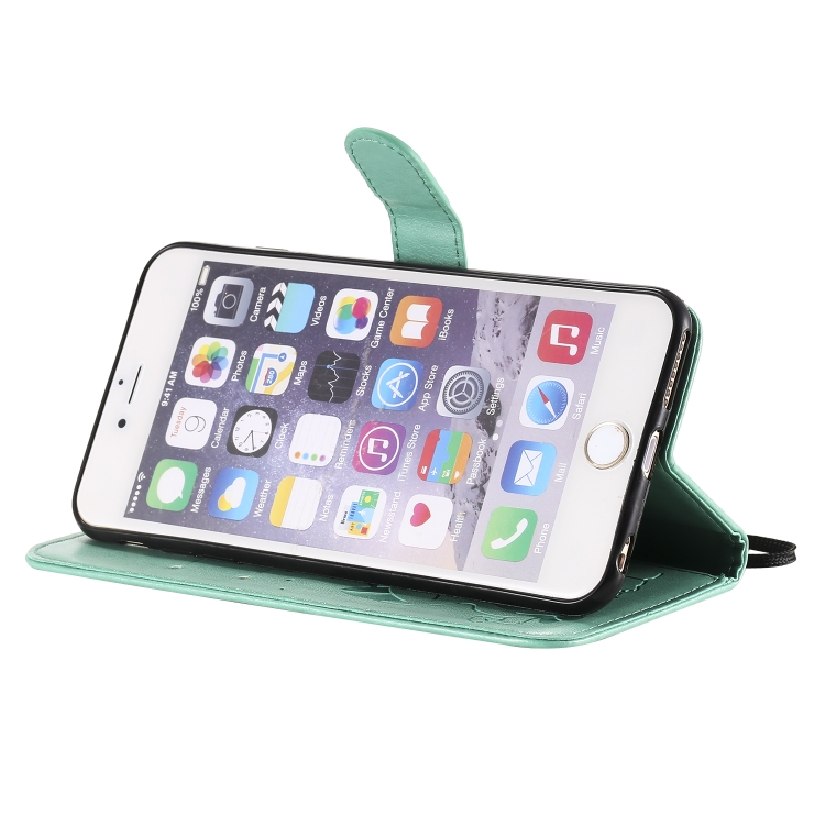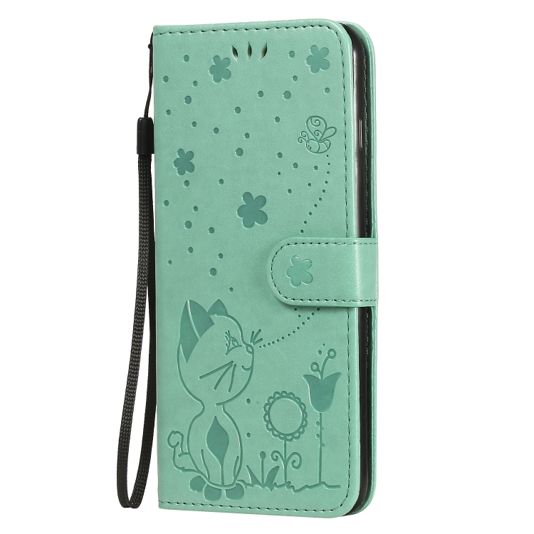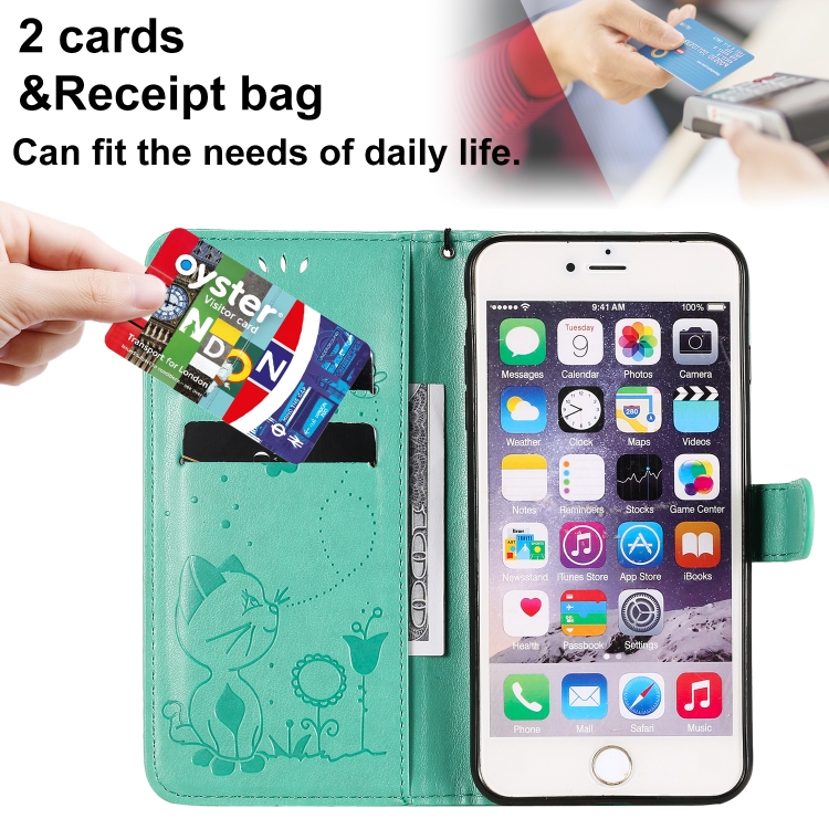 Funda de Cuero iPhone 6 Plus Patrón Gato Abeja Relieve a Prueba de Golpes Horizontal con Sostenedor y Ranuras para Tarjetas (Verde)
