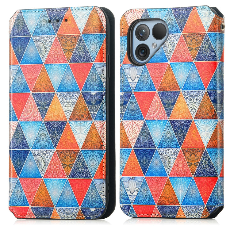 Estuche de Cuero Magnético Caseneo para Fairphone 5 (Rhombus Mandala)