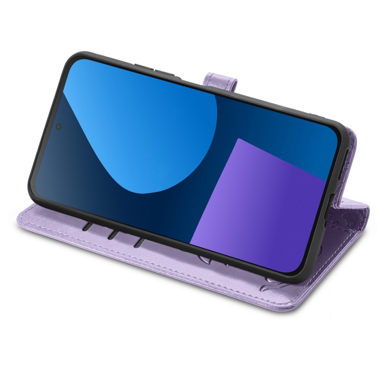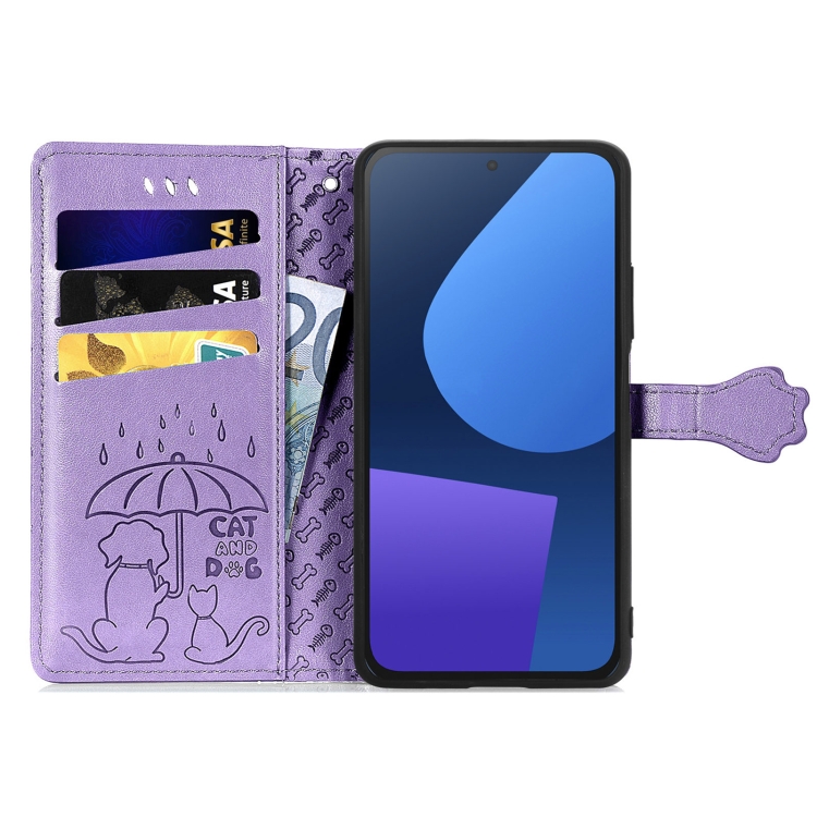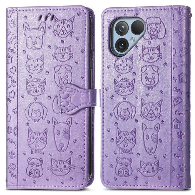 Funda de Cuero para Fairphone 5 con Relieve de Gatos y Perros (Púrpura)