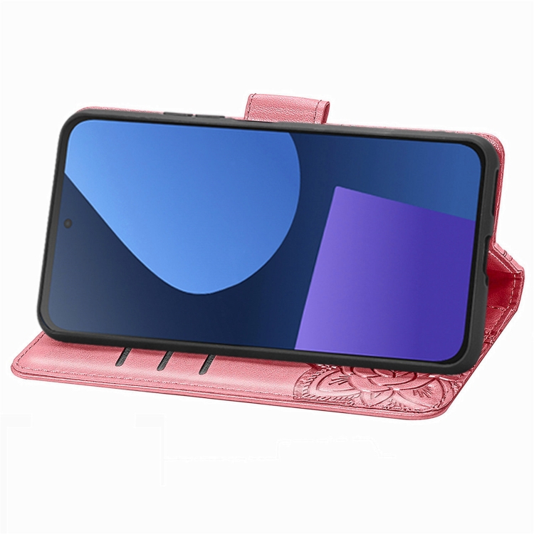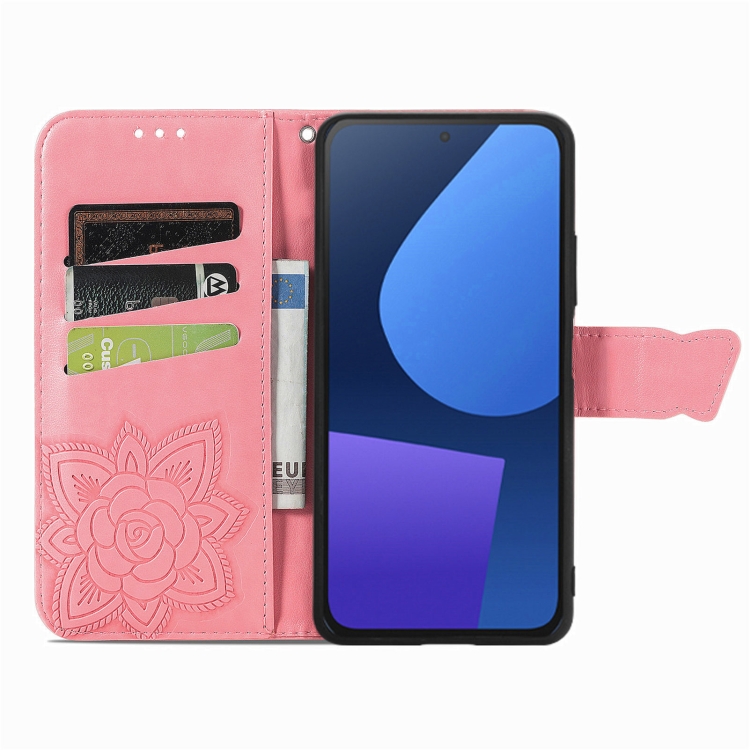 Funda de Cuero para Fairphone 5 con Relieve de Flor de Amor y Mariposa (Rosa)