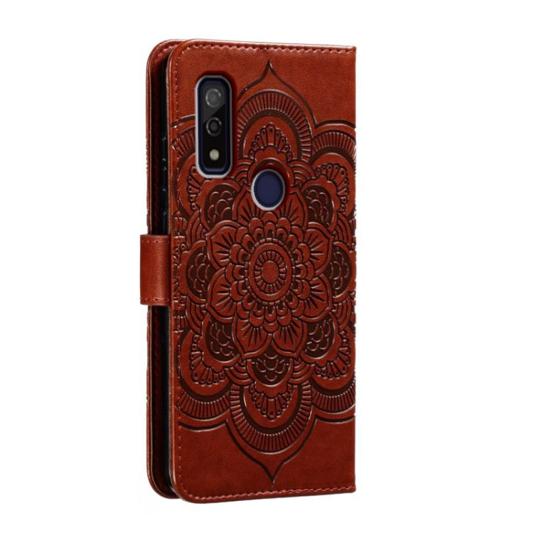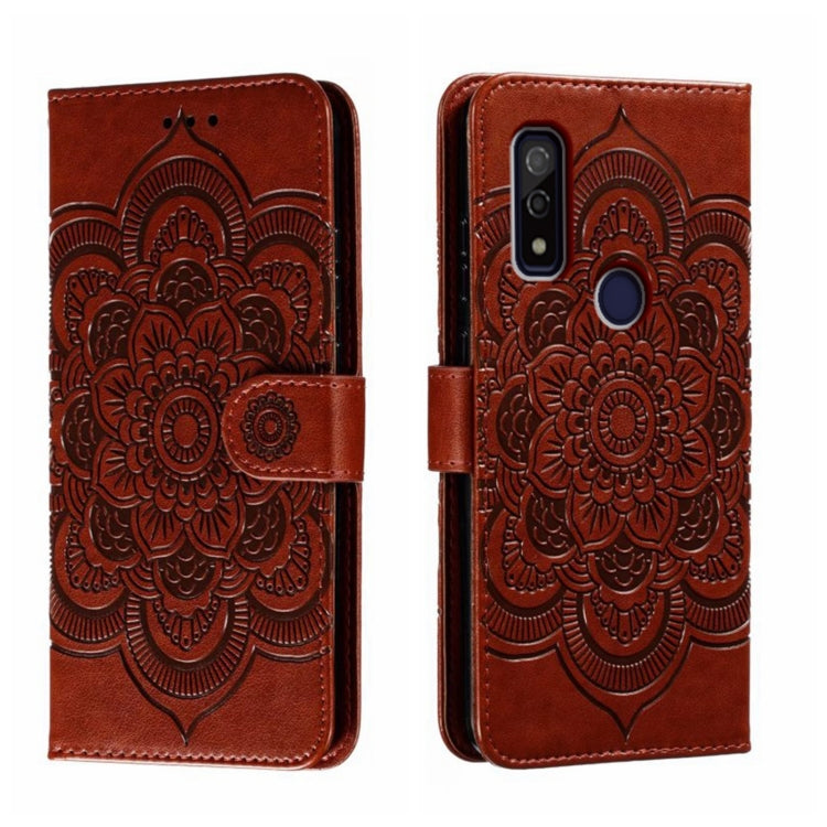 Funda de Cuero para Fujitsu Arrows We F-51B con Patrón En Relieve Sun Mandala (Marrón)