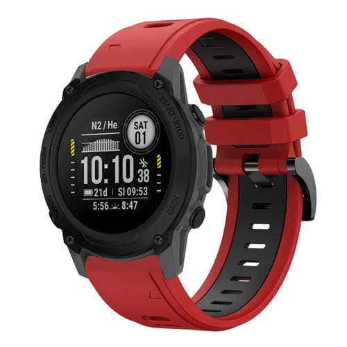 Banda de Reloj para Garmin Descent G1 22mm Silicona Deportiva Dos Colores (Rojo + Negro)
