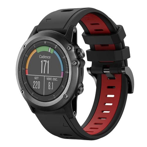 Banda de Reloj para Garmin Fenix 3 26mm Silicona Deportiva Dos Colores (Negro + Rojo)