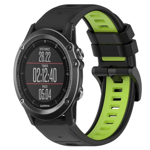 Correa para Garmin Fenix 3 Hr 26mm Silicona Bicolor Sports (Negro + Verde Lima)