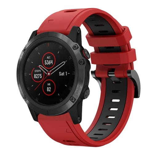Banda de Reloj silicona deportiva Garmin Fenix 5 Plus 22mm dos colores (Rojo + Negro)