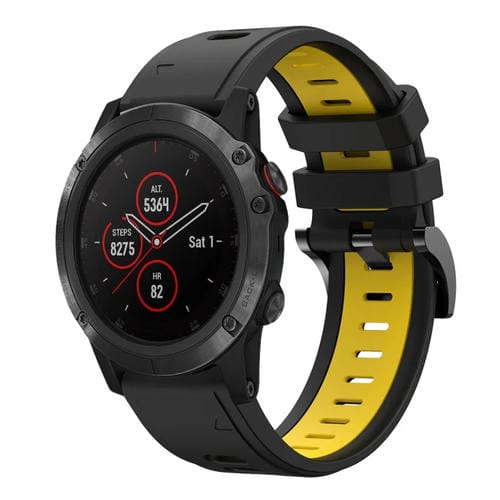Banda de Reloj Silicona Deportiva para Garmin Fenix 5X Plus 26mm (Negro + Amarillo)