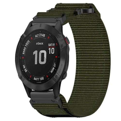 Correa de Reloj para Garmin Fenix 6 con Cierre de Gancho y Bucle de Nailon 22mm (Verde Militar)