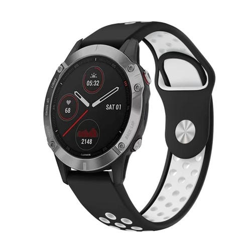Pour Garmin Fenix ​​​​6 GPS 22 mm Sports Bracelet de montre en silicone respirant (noir + blanc)