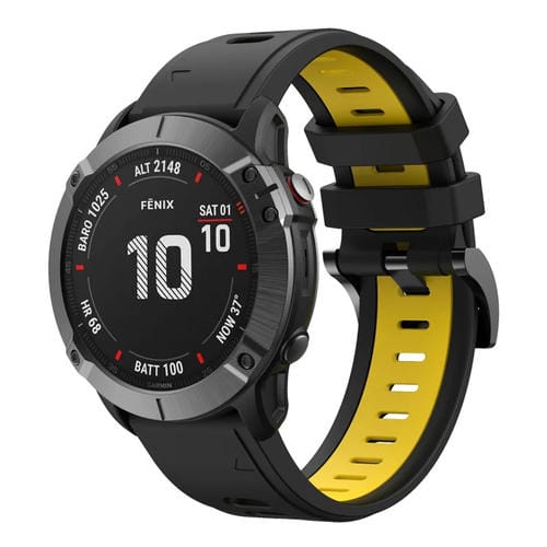 Para Garmin Fenix 6 Pro Gps 22mm Banda de Reloj de Silicona Deportiva de Dos Colores (Negro + Amarillo)