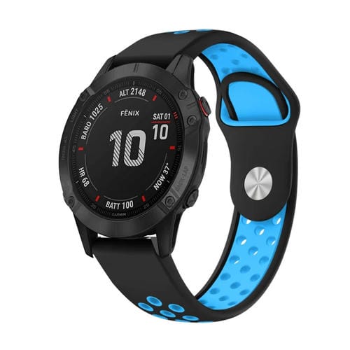 Pour Garmin Fenix ​​​​6 Pro GPS 22 mm Sports Bracelet de montre en silicone respirant (noir + bleu)
