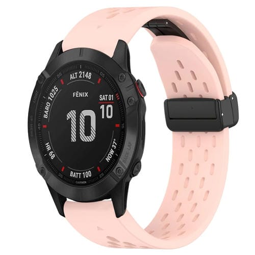 Correa de Silicona para Garmin Fenix 6 Pro GPS con Orificio y Hebilla Plegable 22mm (Rosa)