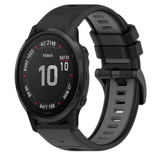 Correa Silicona Deportiva 20mm para Garmin Fenix 6S Pro (Negro + Gris)